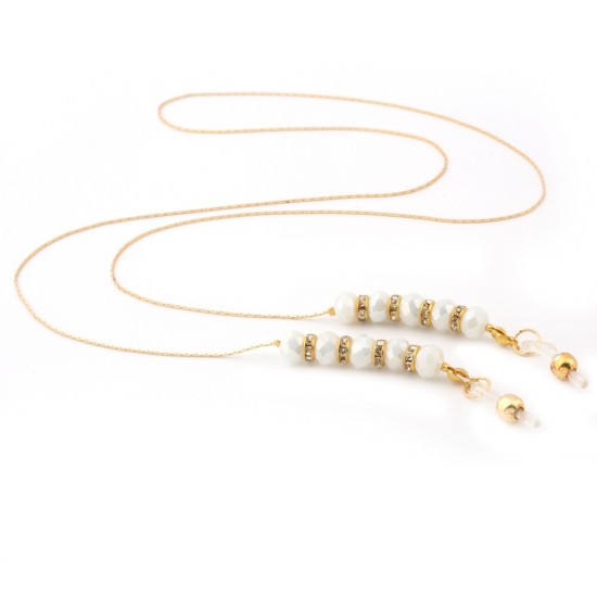 Kararma yapmaya dayanıklı altın kaplama İtalyan zincir üzerine kristal taşlar ile tasarlanmış modern ve şık gözlük askısı.